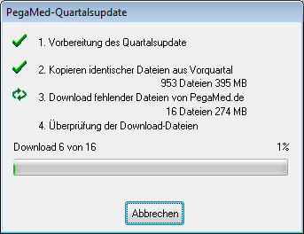 Die Quartalsupdates werden Ihnen rechtzeitig zum Quartalwechsel direkt über die integrierte Updatefunktion zur Verfügung gestellt. Das Quartalsupdate ist optimiert und es werden nur die Daten aus dem Internet herunter geladen, die sich seit dem letzten Quartalsupdate verändert haben. (Reduzierung des Downloadvolumens).
