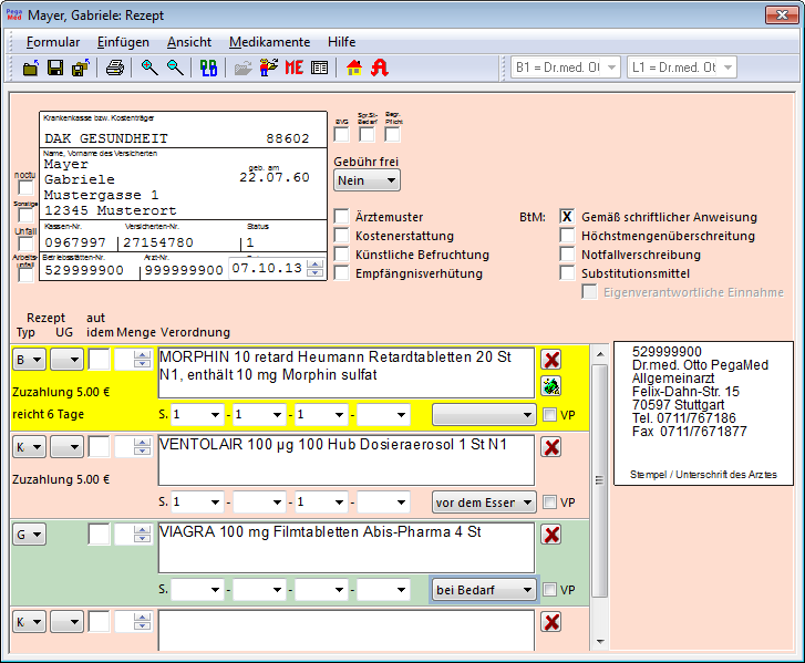 Die Verordnung von Medikamenten kann u.a. auf dem Kassenrezept, Grünem Rezept oder einem der vielen verschiedenen Privatrezepte erfolgen. Teilen Sie Ihrem Patienten mit Hilfe des Verordnungsplans die Einnahmevorschriften mit.