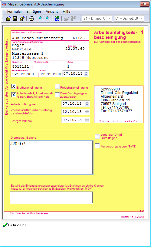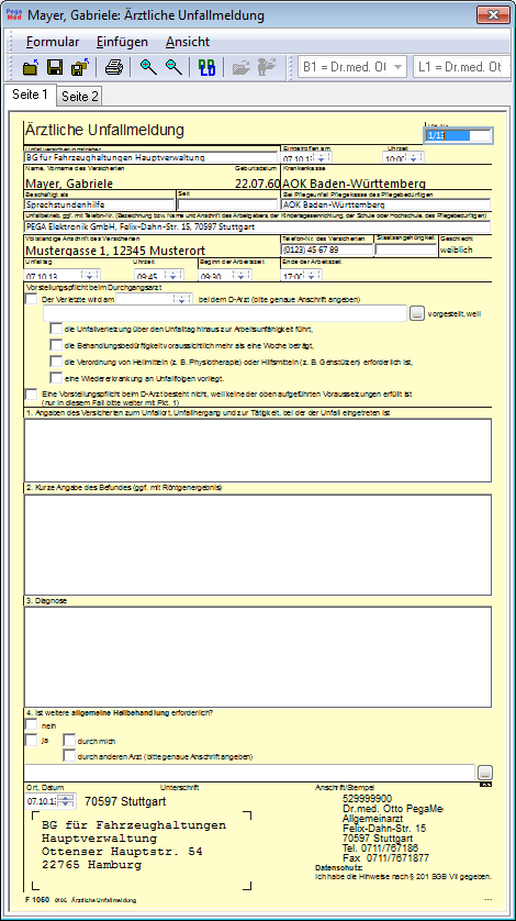 PegaMed bringt einen Satz der bundesweit genormten und zusätzlich auch viele nur lokal zum Einsatz kommende Formulare aus den Bereichen Gesetzliche Krankenversicherung, Arbeitsunfälle, Rentenversicherung sowie der PKV mit. Neben der originalgetreuen Darstellung erleichtern viele Zusatzfunktionen die notwendige Arbeit des Ausfüllens.