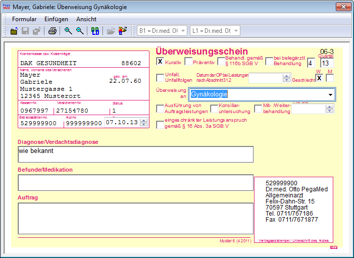 - Profile, in denen man wiederkehrende Formularinhalte ablegen kann z.B. “Laborüberweisung großes Blutbild”