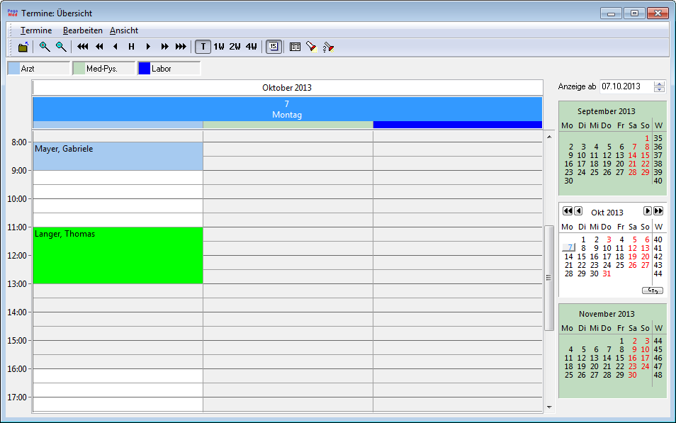 - abrufbare Listen von möglichen Untersuchungen (z.B. Vorsorgeleistungen) der nächsten Tage (Zeitraum frei einstellbar)