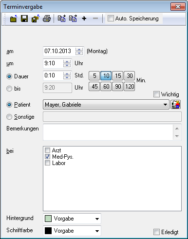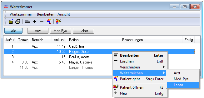 - Wartezimmer mit automatischer Vorbelegung aller am Tage bestellten Patienten